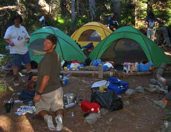 The plan for today we to break camp, ferry loads to the pickup point, and hike back to our first camp. Everyone looked surprising well considering the empties.