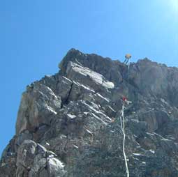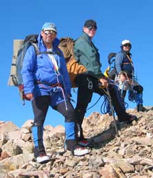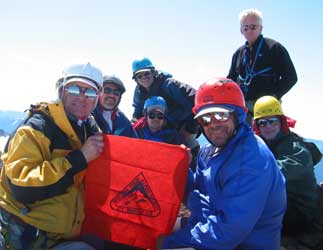 In the summer of 2003, a group of old Way Too High Alpine Society climbers got together for a climb. Rod Sly flew up from Albuquerque, New Mexico, Chuck Gullick flew up from Sarasota, Florida, and Wayne "Wayneco" Waldroup appeared out of nowhere. Rounding out the team of eight were Brad Canady, Glenn Cirlincione, Pat Ellis, Bruce Kolpack, and Terry Mataya.