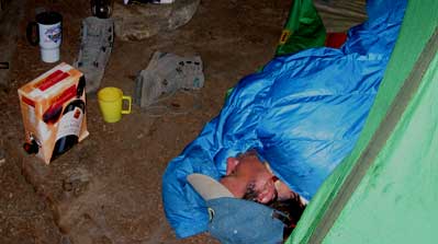 the tent trying to get some sleep.
